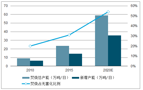 2010-2020年中國(guó)垃圾焚燒處理能力發(fā)展情況