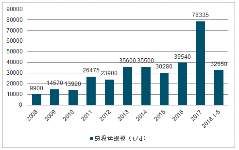 2008-2018.1-5垃圾焚燒行業(yè)總投運(yùn)規(guī)模