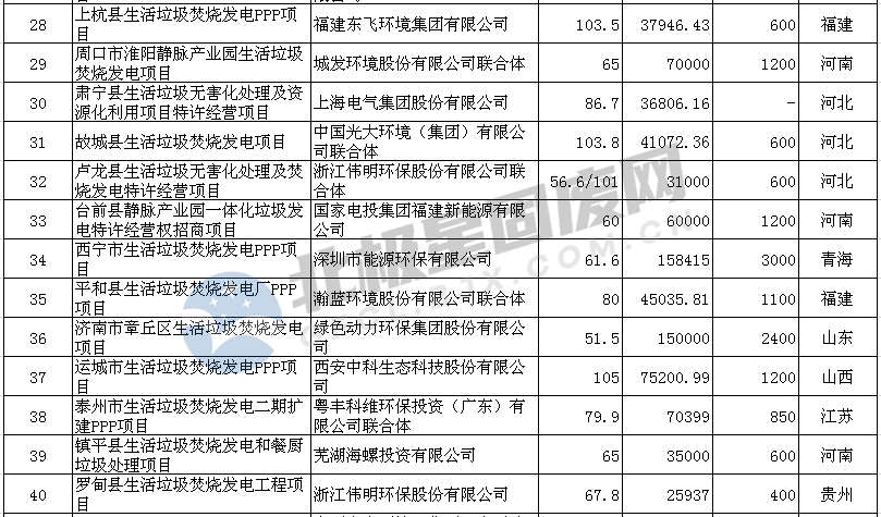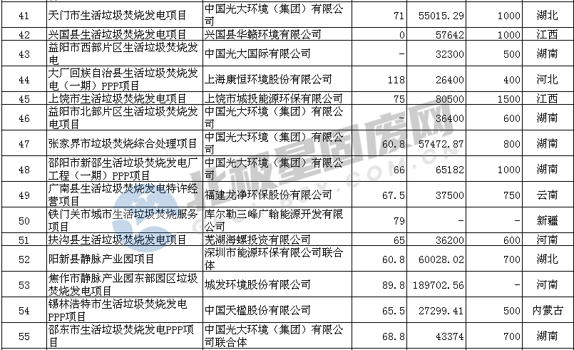 從69個中標(biāo)的垃圾發(fā)電項目來看,湖南、河北、河南三個省份分別累計釋放11、9、8個項目,位居全國前三,湖北省中標(biāo)5個垃圾焚燒發(fā)電項目位居第四位,華北、華中地區(qū)市場爆發(fā),同時內(nèi)蒙古、新疆等地也有項目釋放,青海西寧市垃圾焚燒發(fā)項目是青海省首個在建的大規(guī)模垃圾焚燒發(fā)電項目,市場進(jìn)一步向西擴(kuò)張。