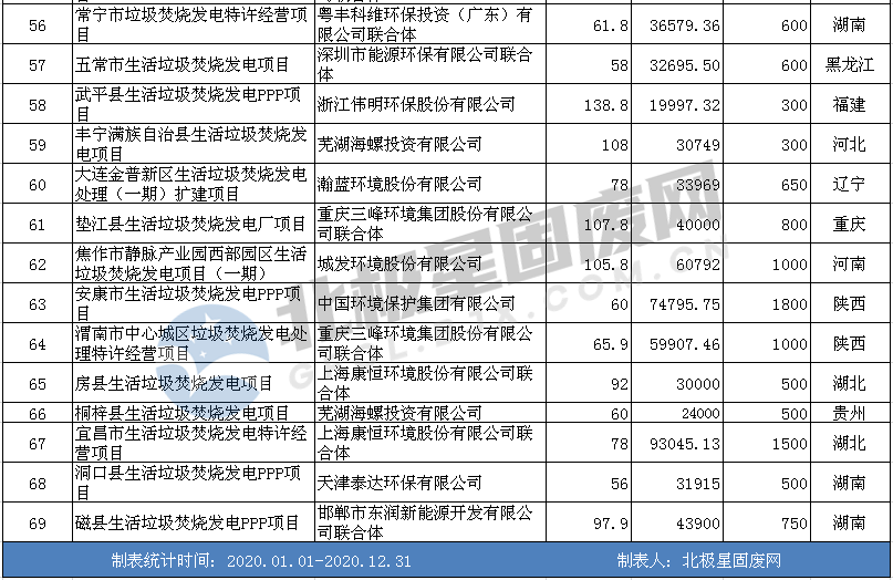 北極星垃圾發(fā)電網(wǎng)匯總了2020年各省、市、自治區(qū)部分垃圾焚燒發(fā)電項目中標(biāo)情況,主要數(shù)據(jù)來源中國政府采購網(wǎng)以及省級政府采購網(wǎng),如有遺漏,敬請諒解,如下表所示(僅供參考):